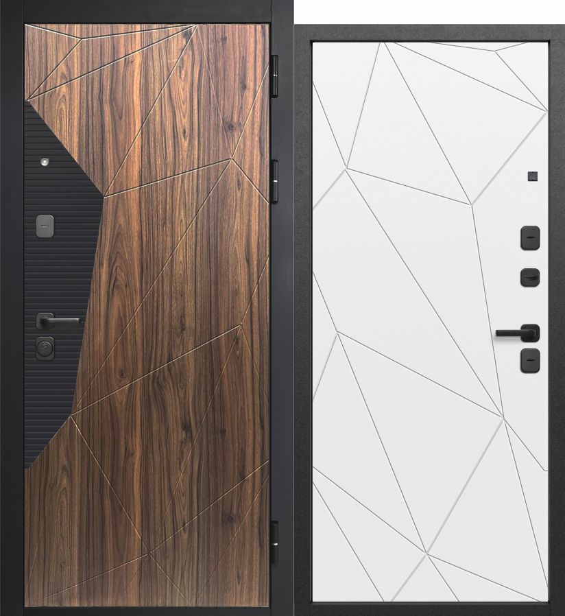 Смелое архитектурное решение для современного пространства. Модель объединяет индустриальную эстетику с геометрической чёткостью линий, создавая эффект продуманного дизайнерского высказывания у входа в дом.